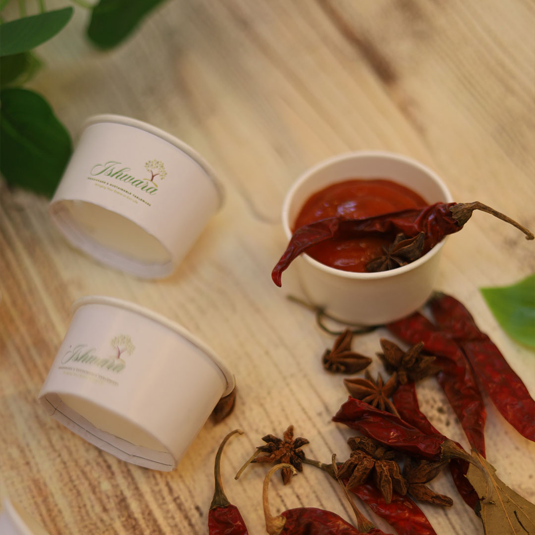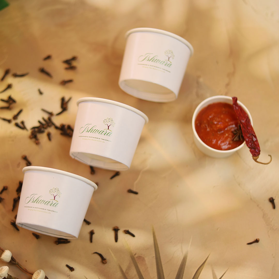 Crafted For: packaging and serving chutneys, dips and sauces, condiments, dessert portions, tasting shots, spice and dry good samples, ice cream scoops, kulfi bites, brownie crumble, hummus, aioli, salad dressings, raita, mint chutney, mayonnaise, ketchup, peri peri sauce, cheese dip, chocolate sauce, espresso shots, filter coffee, cold brew samplers, masalas, tea leaves and coffee beans across retail counters, events, exhibitions, catering setups and giveaway sampling.