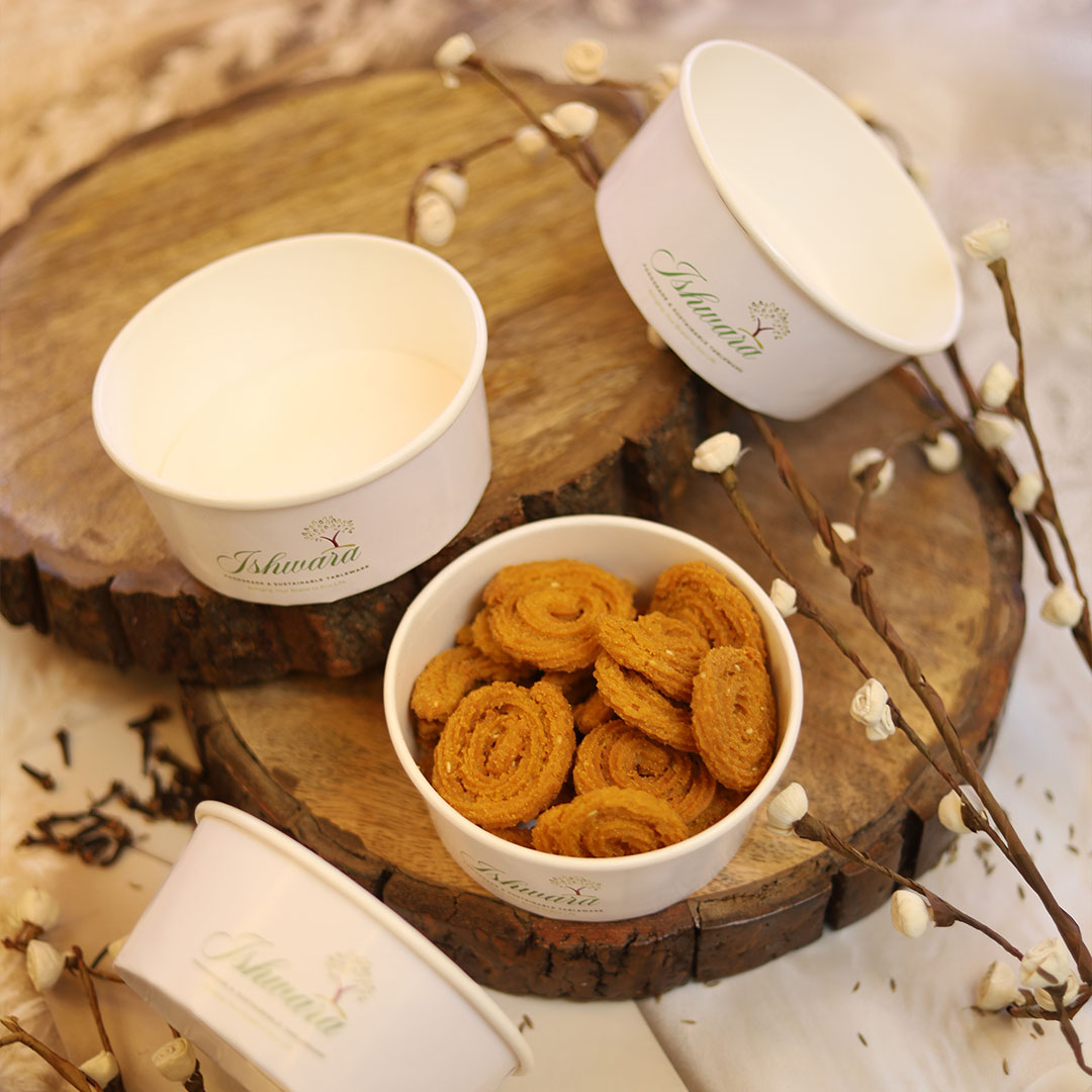 Whether you need paper bowls with lids to use in your delivery models or paper bowls with high capacity to use in your institution or a full service with paper cutlery, Ishwara offers something that can fit your needs. Our reusable disposable bowls allow the brands to uphold hygiene, presentation, and sustainability in every service.